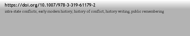 | 书目名称 | Civil War and Narrative | | 副标题 | Testimony, Historiog | | 编辑 | Karine Deslandes,Fabrice Mourlon,Bruno Tribout | | 视频video | http://file.papertrans.cn/227/226922/226922.mp4 | | 概述 | Explores the narrative forms and strategies associated with civil war, from early modern times to the present day.Provides a multidisciplinary approach to the subject, covering a range of geographical | | 图书封面 |  | | 描述 | This book explores the representation of intra-state conflicts. It offers a distinctive approach by looking at narrative forms and strategies associated with civil war testimony, historiography and memory. The volume seeks to reflect current research in civil war in a number of disciplines and covers a range of geographical areas, from the advent of modern forms of testimonies, history writing and public remembering in the early modern period, to the present day. In focusing on narrative, broadly defined, the contributors not only explore civil war testimonies, historiography and memory as separate fields of inquiry, but also highlight the interplay between these areas, which are shown to share porous boundaries. Chapters look at the ways in which various narrative forms feed off each other, be they oral, written or visual narratives, personal or collective accounts, or testimonies from victims or perpetrators.. | | 出版日期 | Book 2017 | | 关键词 | intra-state conflicts; early modern history; history of conflict; history writing; public remembering | | 版次 | 1 | | doi | https://doi.org/10.1007/978-3-319-61179-2 | | isbn_softcover | 978-3-030-09658-8 | | isbn_ebook | 978-3-319-61179-2 | | copyright | The Editor(s) (if applicable) and The Author(s) 2017 |