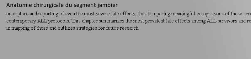 Late Effects of Therapy of Acute Lymphoblastic Leukemiaon capture and reporting of even the most severe late effects, thus hampering meaningful comparisons of these across contemporary ALL protocols. This chapter summarizes the most prevalent late effects among ALL survivors and recent advances in mapping of these and outlines strategies for future research.