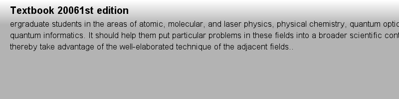| 描述 | .A large number of modern problems in physics, chemistry, and quantum electronics require a consideration of population dynamics in complex multilevel quantum systems. The purpose of this book is to provide a systematic treatment of these questions and to present a number of exactly solvable problems. It considers the different dynamical problems frequently encountered in different areas of physics from the same perspective, based mainly on the fundamental ideas of group theory and on the idea of ensemble average. Also treated are concepts of complete quantum control and correction of decoherence induced errors that are complementary to the idea of ensemble average. .Coherent Dynamics of Complex Quantum Systems. is aimed at senior-level undergraduate students in the areas of atomic, molecular, and laser physics, physical chemistry, quantum optics and quantum informatics. It should help them put particular problems in these fields into a broader scientific context and thereby take advantage of the well-elaborated technique of the adjacent fields.. |