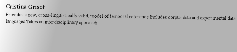 Titlebook: Cohesion, Coherence and Temporal Reference from an Experimental Corpus Pragmatics Perspective; Cristina Grisot Book‘‘‘‘‘‘‘‘ 2018 The Edito |