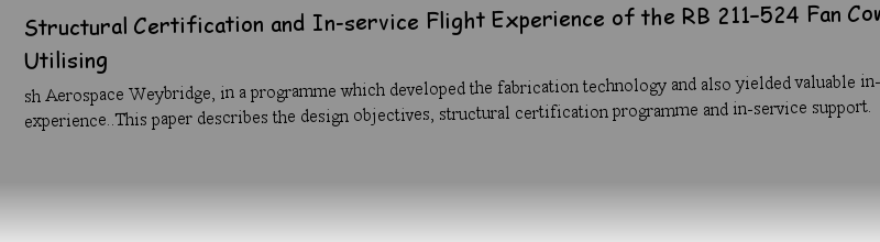 | 书目名称 | Composite Structures 3 | | 编辑 | I. H. Marshall | | 视频video | http://file.papertrans.cn/232/231833/231833.mp4 | | 图书封面 |  | | 描述 | The papers contained herein were presented at the Third International Conference on Composite Structures (ICCS/3) held at Paisley College of Technology, Paisley, Scotland, in September 1985. The Conference was organised and sponsored by Paisley College of Technology. It was co sponsored by the Scottish Development Agency, the National Engineering Laboratory, the USAF European Office of Aerospace Research and Development, and the US Army Research, Development and Standard isation Group-UK. It forms a natural and ongoing progression from the highly successful First and Second International Conferences on Composite Structures (ICCS/l and ICCS/2) held at Paisley in 1981 and 1983, respectively. To label composites as rather specialised, sophisticated, space-age structural materials would be to underestimate greatly their wider industrial potential. It is unquestionably true that they will play an increasingly dominant, if not decisive, role in aerospace engineering. Indeed a future aircraft industry without composites as the prime structural materials is inconceivable. However, in an energy-conscious world the high specific weights and stiffnesses of composites make them an attractive | | 出版日期 | Book 1985 | | 关键词 | composite; composite material; deformation; fatigue; fracture mechanics; glass; modeling; structural analys | | 版次 | 1 | | doi | https://doi.org/10.1007/978-94-009-4952-2 | | isbn_softcover | 978-94-010-8695-0 | | isbn_ebook | 978-94-009-4952-2 | | copyright | Elsevier Applied Science Publishers Ltd 1985 |