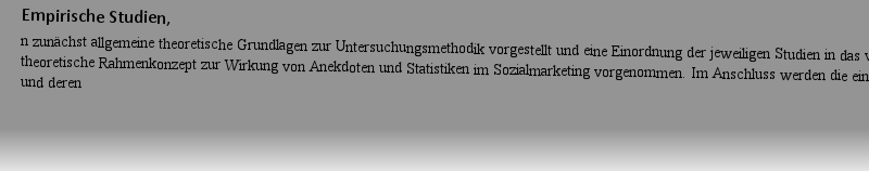 | 书目名称 | Die persuasive Wirkung von anekdotischen und statistischen Botschaften im Sozialmarketing |