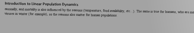 | 关键词 | differential equations; difference equations; linear population dynamics; non-linear population dynamic |