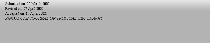 SSCI期刊SINGAPORE JOURNAL OF TROPICAL GEOGRAPHY 2024/2025影响因子:2.222 (SINGAPORE J TROP GEO) (0129-7619). (GEOGRAPHY)(地理学)S |