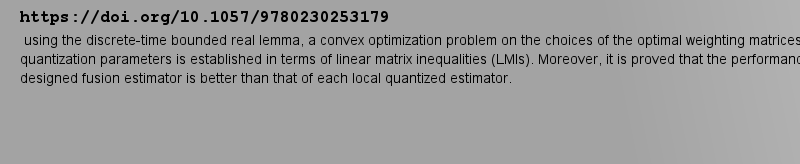 Titlebook: Distributed Fusion Estimation for Sensor Networks with Communication Constraints; Wen-An Zhang,Bo Chen,Li Yu Book 2016 Science Press, Beij |
