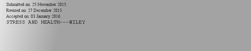 | 期刊全称 | STRESS AND HEALTH | | 期刊简称 | STRESS HEALTH | | 影响因子2024 | 3.195 | | 视频video | http://file.papertrans.cn/29/28741/28741.mp4 | | ISSN | 1532-3005 | | eISSN | 1532-2998 | | 出版商 | WILEY | | 发行地址 | 111 RIVER ST, HOBOKEN, USA, NJ, 07030-5774 | | 学科分类 | 1.Science Citation Index Expanded (SCIE)--Psychiatry | Psychology; 2.Social Sciences Citation Index (SSCI)--Psychiatry | Psychology, Applied; 3.Biological Abstracts--Psychiatry | Psychology | Psychology, Applied; 4.BIOSIS Previews_BIOSIS Citation Index--Psychiatry | Psychology | Psychology, Applied; 5.Current Contents Social And Behavioral Sciences--Psychiatry; 6.Essential Science Indicators--Psychiatry/Psychology; | | 出版语言 | English |