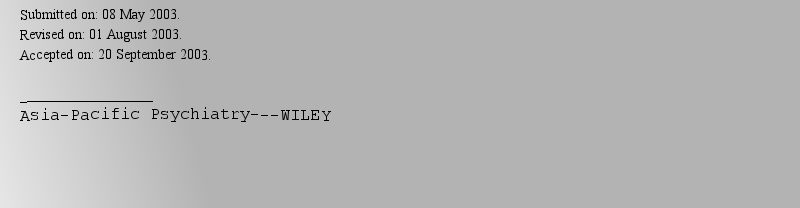 SCIE期刊Asia-Pacific Psychiatry 2024/2025影响因子:2.805 (ASIA-PAC PSYCHIAT) (1758-5864). (PSYCHIATRY)(精神病学)Science Citation I |