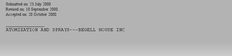 | 期刊全称 | ATOMIZATION AND SPRAYS | | 期刊简称 | ATOMIZATION SPRAY | | 影响因子2024 | 1.199 | | 视频video | http://file.papertrans.cn/3/2997/2997.mp4 | | ISSN | 1044-5110 | | eISSN | 1936-2684 | | 出版商 | BEGELL HOUSE INC | | 发行地址 | 50 NORTH ST, DANBURY, USA, CT, 06810 | | 学科分类 | 1.Science Citation Index Expanded (SCIE)--Engineering, Multidisciplinary | Engineering, Chemical | Engineering, Mechanical | Materials Science, Multidisciplinary | Physics, Applied; 2.Current Contents Engineering, Computing & Technology--Mechanical Engineering; 3.Essential Science Indicators--Engineering; | | 出版语言 | English |