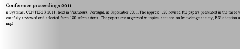 Titlebook: ENTERprise Information Systems; International Confer Maria Manuela Cruz-Cunha,João Varajão,Ricardo Mart Conference proceedings 2011 Springe |