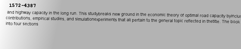 Book 1999ay capacity in the long run. This studybreaks new ground in the economic theory of optimal road capacity byincluding theoretical contributions, empirical studies, and simulationexperiments that all pertain to the general topic reflected in thetitle. The book is organized into four sections: 1) highw