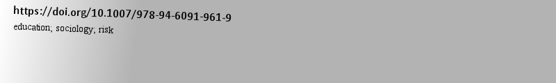 | 书目名称 | Education and the Risk Society | | 副标题 | Theories, Discourse | | 编辑 | Steven Bialostok,Robert L. Whitman,William S. Brad | | 视频video | http://file.papertrans.cn/303/302459/302459.mp4 | | 概述 | Written by experts, Gives a modern approach, Comprehensive in Scope | | 丛书名称 | Context of Education | | 图书封面 |  | | 描述 | Sociological and anthropological literature has examined how contemporary western society has become a “risk society.” Education and the Risk Society is the first volume to explore this seminal concept through the lens of education. Drawing on a theoretical literature that has great potential as a lens to view changes in neoliberal discourses of global capitalism from both critical and generative perspectives, Education and the Risk Society presents situated, empirical studies investigating an uncertain world as people practice it on the ground, through language and activity, within educational settings. | | 出版日期 | Book 2012 | | 关键词 | education; sociology; risk | | 版次 | 1 | | doi | https://doi.org/10.1007/978-94-6091-961-9 | | isbn_ebook | 978-94-6091-961-9 | | copyright | SensePublishers 2012 |