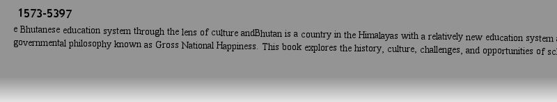 | 书目名称 | Education in Bhutan | | 副标题 | Culture, Schooling, | | 编辑 | Matthew J. Schuelka,T.W. Maxwell | | 视频video | http://file.papertrans.cn/303/302490/302490.mp4 | | 概述 | The first comprehensive overview of the Bhutanese education system.Offers a unique exploration of the challenges and opportunities within the Bhutanese education system through the lens of culture and | | 丛书名称 | Education in the Asia-Pacific Region: Issues, Concerns and Prospects | | 图书封面 |  | | 描述 | Bhutan is a country in the Himalayas with a relatively new education system and a unique governmental philosophy known as Gross National Happiness. This book explores the history, culture, challenges, and opportunities of schooling in Bhutan. It discusses topics including historical perspectives on Buddhist monastic education, the regional and international influence on educational development, traditional medical education, higher education, and the evolution of Bhutanese educational policy, to name but a few. It also investigates contemporary challenges to schooling in Bhutan such as adult education, inclusive education, early childhood education, rurality, and gender. Throughout the book, the developmental philosophy of Gross National Happiness is explored as a novel and culturally vital approach to education in Bhutan. The majority of the authors are prominent Bhutanese scholars and educational leaders, with select non-Bhutanese international scholars with strong links to Bhutan also contributing. This book is a valuable resource not only for those specifically interested in education in Bhutan, but for anyone with an interest in South Asian studies, general Asian studies, educ | | 出版日期 | Book 2016 | | 关键词 | Bhutan’s education system; Buddism and education; GNH Education; Gross National Happiness; education in | | 版次 | 1 | | doi | https://doi.org/10.1007/978-981-10-1649-3 | | isbn_softcover | 978-981-10-9411-8 | | isbn_ebook | 978-981-10-1649-3Series ISSN 1573-5397 Series E-ISSN 2214-9791 | | issn_series | 1573-5397 | | copyright | Springer Science+Business Media Singapore 2016 |