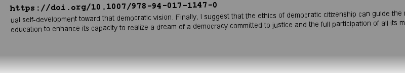 Education and the Ethics of Democratic Citizenship,ual self-development toward that democratic vision. Finally, I suggest that the ethics of democratic citizenship can guide the reform of public education to enhance its capacity to realize a dream of a democracy committed to justice and the full participation of all its members.