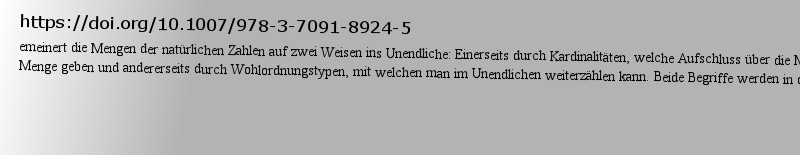 https://doi.org/10.1007/978-3-642-69716-6Cantors zur Gleichmächtigkeit von ℝ. und ℝ vorgeführt. Der zentrale Satz dieses Kapitels ist der Satz von Cantor-Bernstein, welcher besagt, dass zwei Mengen gleichmächtig sind, falls es von jeder der Mengen in die jeweils andere eine Injektion gibt. Dieser Satz hat zahlreiche Anwendungen, welche ebe