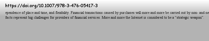| 书目名称 | Electronic Banking | | 副标题 | The Ultimate Guide t | | 编辑 | SCN Education B.V. | | 视频video | http://file.papertrans.cn/307/306201/306201.mp4 | | 概述 | Net Banking unveiled | | 丛书名称 | XHOTT Guide | | 图书封面 |  | | 描述 | Net Banking Unveiled The world of banking and financial services is in the midst of dramatic change. Driven by deregulation, consolidation and information technology, the financial services industry is busy reshaping itself - moving away from traditional "brick-and-mortar" branches to focus on new delivery channels, improved customer service and 24-hour-a-day access to information and transactions. According to IBM Consulting Group, within 10 years, Internet will become the dominant delivery channel for financial services, even if currently Internet banking operations represent approximately 5% of transactions total volume in the USA and in Europe. As the industry changes, financial institutions are experimenting with and embracing a wealth of new technologies. Through automated teller machines, Internet banking, extended-hour call centers and more, banks and other operations are educating their consumers on how advanced technology can lower costs while improving the level of customer service. "Bankers‘ hours" used to be from 9 a.m. to 4 p.m., Monday through Friday. With the help of new technology, today‘s consumers can check their account balances, apply for loans, get cash or con | | 出版日期 | Book 2001 | | 关键词 | Banking; Electronic Banking; Home Banking; Internet; Online Banking; bank; banking; industry; Information Te | | 版次 | 1 | | doi | https://doi.org/10.1007/978-3-322-86627-1 | | isbn_softcover | 978-3-322-86629-5 | | isbn_ebook | 978-3-322-86627-1 | | copyright | Friedr. Vieweg & Sohn Verlagsgesellschaft mbH, Braunschweig/Wiesbaden 2001 |