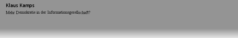 Titlebook: Elektronische Demokratie?; Perspektiven politis Klaus Kamps Book 1999 Westdeutscher Verlag GmbH, Opladen/Wiesbaden 1999 Demokratie.Neue Med |