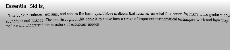 | 描述 | .Based on over 15 years’ experience in the design and delivery of successful first-year courses, this book equips undergraduates with the mathematical skills required for degree courses in economics, finance, management and business studies. The book starts with a summary of basic skills and takes its readers as far as constrained optimisation helping them to become confident and competent in the use of mathematical tools and techniques that can be applied to a range of problems in economics and finance...Designed as both a course text and a handbook, the book assumes little prior mathematical knowledge beyond elementary algebra and is therefore suitable for students returning to mathematics after a long break. The fundamental ideas are described in the simplest mathematical terms, highlighting threads of common mathematical theory in the various topics.. |