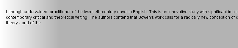 | 书目名称 | Elizabeth Bowen and the Dissolution of the Novel |