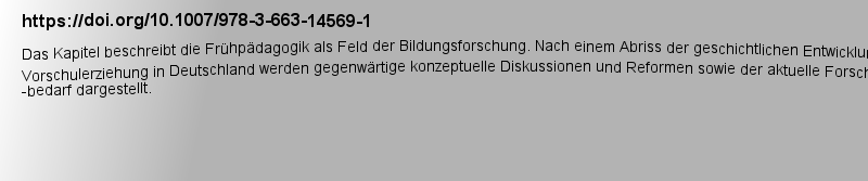 | 书目名称 | Empirische Bildungsforschung | | 副标题 | Gegenstandsbereiche | | 编辑 | Heinz Reinders,Hartmut Ditton,Burkhard Gniewosz | | 视频video | http://file.papertrans.cn/309/308924/308924.mp4 | | 概述 | Untersuchungsfelder kennenlernen | | 图书封面 |  | | 描述 | ‘Empirische Bildungsforschung‘ gibt eine umfassende Einführung in die Struktur, Methoden und den Gegenstand unter besonderer Berücksichtigung ausgewählter Themenfelder. Das Lehrbuch geht in konzentrierter Weise auf die Inhalte ein, die für Studierende in BA/MA-und Lehramts-Studiengängen aller sozialwissenschaftlichen Studiengänge von grundsätzlicher Bedeutung sind. Die Beiträge des Lehrbuchs behandeln Theorien, Methoden, relevante nationale sowie internationale Befunde und Perspektiven des Forschungsfeldes. Neben Merksätzen, Definitionen und Exkursen bietet diese Einführung zu jedem Themengebiet weiterführende Literatur. Das Lehrbuch befasst sich im ersten Band mit grundlegenden Strukturen sowie Forschungsmethoden der Empirischen Bildungsforschung. Hierauf aufbauend behandelt der zweite Band relevante Theorien und den Forschungsstand wichtiger Gegenstandsbereiche der Empirischen Bildungsforschung. | | 出版日期 | Textbook 20111st edition | | 关键词 | Erziehungswissenschaft; Lehr-Lernforschung; Master of Education; Praxisbezug; Soziale Ungleichheit | | 版次 | 1 | | doi | https://doi.org/10.1007/978-3-531-93021-3 | | isbn_ebook | 978-3-531-93021-3 | | copyright | VS Verlag für Sozialwissenschaften | Springer Fachmedien Wiesbaden GmbH, Wiesbaden 2011 |