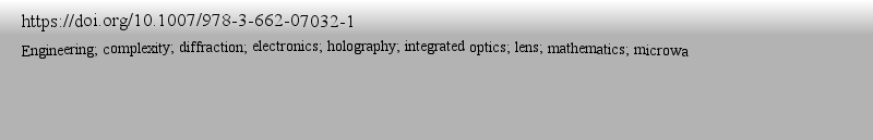 | 书目名称 | Engineering Optics | | 编辑 | Keigo Iizuka | | 视频video | http://file.papertrans.cn/311/310885/310885.mp4 | | 图书封面 |  | | 描述 | "Which area do you think I should go into?" or "Which are the areas that have the brightest future?" are questions that are frequently asked by students trying to decide on a field of specialization. My advice has always been to pick any field that combines two or more disciplines such as Nuclear Physics, Biomedical Engineering, Optoelectronics, or even Engineering Optics. With the ever growing complexity of today‘s science and technology, many a problem can be tackled only with the cooperative effort of more than one discipline. Engineering Optics deals with the engineering aspects of optics, and its main emphasis is on applying the knowledge. of optics to the solution of engineering problems. This book is intended both for the physics student who wants to apply his knowledge of optics to engineering problems and for the engineering student who wants to acquire the basic principles of optics. The material in the book was arranged in an order that would progres sively increase the student‘s comprehension of the subject. Basic tools and concepts presented in the earlier chapters are then developed more fully and applied in the later chapters. In many instances, the arrangement of t | | 出版日期 | Textbook 19851st edition | | 关键词 | Engineering; complexity; diffraction; electronics; holography; integrated optics; lens; mathematics; microwa | | 版次 | 1 | | doi | https://doi.org/10.1007/978-3-662-07032-1 | | isbn_ebook | 978-3-662-07032-1 | | copyright | Springer-Verlag Berlin Heidelberg 1985 |