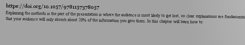 | 描述 | Good presentation skills are key to a successful career in academia. This guide provides examples taken from real presentations given both by native and non-native academics covering a wide variety of disciplines..The easy-to-follow guidelines and tips will teach you how to: .plan, prepare and practice a well-organized, interesting presentation.avoid errors in English by using short easy-to-say sentences.improve your English pronunciation and intonation.gain confidence, and overcome nerves and embarrassment.highlight the essential points you want your audience to remember.attract and retain audience attention.deal with questions from the audience.This new edition contains several additional features, including stimulating factoids and discussion points both for self-study and in-class use. New chapters also cover:.learning from talks on TED.networking with potential collaborators, professors, fellow researchers.interacting successfully with non-native audiences.posters.EAP teachers will find this book to be a great source of tips for training students, and for preparing both instructive and entertaining lessons..Other books in the series cover: writing research papers; English gram |