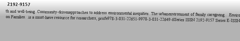 | 书目名称 | Environmental Impacts on Families | | 副标题 | Change, Challenge, a | | 编辑 | Selena E. Ortiz,Susan M. McHale,Jennifer E. Glick | | 视频video | http://file.papertrans.cn/313/312707/312707.mp4 | | 概述 | Examines the physical environment – disasters, climate change, and the built environment.Explores environmental challenges as well as protective factors that promote resilience.Describes government pr | | 丛书名称 | National Symposium on Family Issues | | 图书封面 |  | | 描述 | This book examines ways in which families’ physical environments have implications for their relationships and the health and well-being of their members. Attention is given to three aspects of the physical environment—disasters, climate change, and the built environment—and the challenges these may create for families. Chapters describe particular considerations within each of these three physical environment challenges, the ways they affect families, and factors that protect families, promote their resilience and enable them to flourish. Finally, the volume offers recommendations for the role of government programs and policies to support families to overcome and/or adapt to environmental challenges as well as highlights the efficacy of evidence-based interventions aimed at promoting family resilience..Featured areas of coverage include:..Extreme natural events and families’ postdisaster recovery..Family adaptationsto climate change..The builtenvironment and children’s health and well-being..Community-drivenapproaches to address environmental inequities..The urbanenvironment of family caregiving.. .Environmental Impacts on Families. .is a must-have resource for researchers, profe | | 出版日期 | Book 2023 | | 关键词 | Bangladesh, trauma, environmental challenges, migration; Built environment, children, adolescents, he | | 版次 | 1 | | doi | https://doi.org/10.1007/978-3-031-22649-6 | | isbn_softcover | 978-3-031-22651-9 | | isbn_ebook | 978-3-031-22649-6Series ISSN 2192-9157 Series E-ISSN 2192-9165 | | issn_series | 2192-9157 | | copyright | The Editor(s) (if applicable) and The Author(s), under exclusive license to Springer Nature Switzerl |