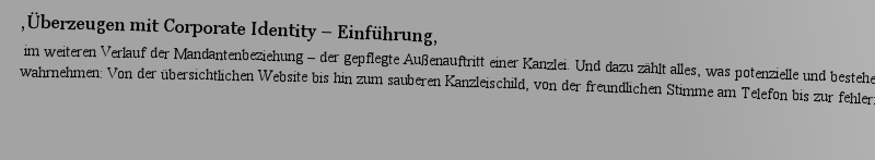 | 描述 | Martina Schäfer erläutert, wie die Elemente Unternehmenskultur, Leitbild und Image genauso wie auch das visuelle Erscheinungsbild der Kanzlei, das Corporate Design, zusammenwirken. Denn entscheidend für den Erfolg von Kanzleien ist oft ihre Persönlichkeit oder auch die Corporate Identity. Der Wettbewerb zwischen Rechtsanwälten, Steuerberatern und Wirtschaftsprüfern wird härter. Immer mehr Kanzleien konkurrieren um Mandanten und Mitarbeiter. Neben dem theoretischen Hintergrund und den Leitfragen für die Umsetzung in der eigenen Kanzlei geben eine Grafikerin und eine Kunstvermieterin im Interview Einblicke zu den vielfältigen Möglichkeiten des Corporate Designs. |