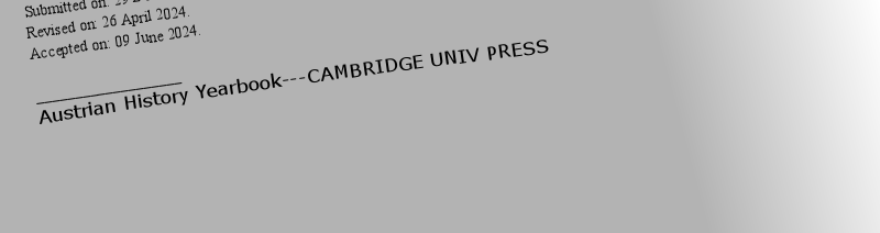 | 期刊全称 | Austrian History Yearbook | | 期刊简称 | AUSTRIAN HIST YEARB | | 影响因子2024 | 0.366 | | 视频video | http://file.papertrans.cn/4/3163/3163.mp4 | | ISSN | 0067-2378 | | eISSN | 1558-5255 | | 出版商 | CAMBRIDGE UNIV PRESS | | 发行地址 | EDINBURGH BLDG, SHAFTESBURY RD, CAMBRIDGE, ENGLAND, CB2 8RU | | 学科分类 | 1.Social Sciences Citation Index (SSCI)--History; 2.Arts & Humanities Citation Index (AHCI)--History; 3.Current Contents Arts & Humanities--History; 4.Current Contents Social And Behavioral Sciences--Sociology & Social Sciences; 5.Essential Science Indicators--Social Sciences, General; | | 出版语言 | English |