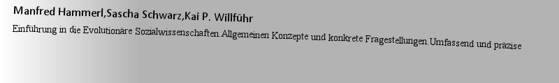 Titlebook: Evolutionäre Sozialwissenschaften; Ein Rundgang Manfred Hammerl,Sascha Schwarz,Kai P. Willführ Textbook 2024 Der/die Herausgeber bzw. der/d |
