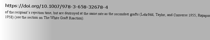 | 书目名称 | Experimental Skin Grafts and Transplantation Immunity | | 副标题 | A Recapitulation | | 编辑 | Donald L. Ballantyne,John Marquis Converse | | 视频video | http://file.papertrans.cn/319/318926/318926.mp4 | | 图书封面 |  | | 描述 | The skin allograft has been used as the test tool since the beginning of investiga tions of the fate of skin transplanted between two individuals of ordinary genetic diversity. This monograph is designed to furnish the transplantation work er with a review of the significant papers in which skin allografts and xeno grafts, applied to experimental animals and man, have played a role in acquiring a body of knowledge concerning the behavior and fate of these transplants and the reaction of the body to their presence. Skin, an essential organ for survival, a barrier between the "milieu inte rieur" of Claude Bernard and the "milieu exterieur," will remain the most frequently used transplant in transplantation research. Because it is highly antigenic, the final solution of the problem of acceptance of allografts of various tissues and organs will probably depend upon the achievement of a permanent survival of skin allografts. My personal interest in transplantation, which originated during my surgi cal training, was rekindled when I met Peter Medawar (today Sir Peter) in England during World War II. I had joined, in 1940, an American Volunteer Surgical Unit (The American Hospital in | | 出版日期 | Book 1979 | | 关键词 | Antigen; Hauttransplantation; Immunität; Skin; transplantation | | 版次 | 1 | | doi | https://doi.org/10.1007/978-1-4612-6223-7 | | isbn_softcover | 978-1-4612-6225-1 | | isbn_ebook | 978-1-4612-6223-7 | | copyright | Springer-Verlag New York Inc. 1979 |