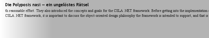 Fragensammlung zur Selbstkontrolle framework. Chapters 3 through 5 covered object-oriented design in general and then focused more around the specific stereotypes directly supported by CSLA .NET. In this chapter, I start walking through the implementation of the CSLA .NET framework by providing an overview of the namespaces and proj