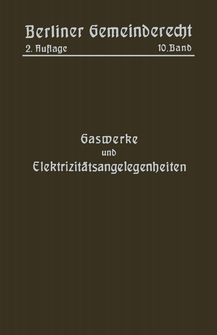 Titlebook: Gaswerke und Elektrizitätsangelegenheiten; Magistrat Book 1913Latest edition Springer-Verlag Berlin Heidelberg 1913 Elektrizität.Gelege.Öf |