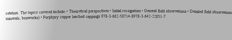 | 关键词 | Gossans; exploration-field technique; leached cappings; leached outcrops; porphyry copper; mineral resour |
