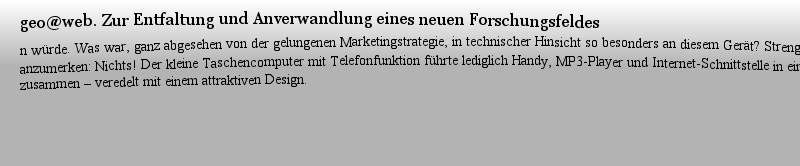 Visuelle Prosumtion im web2.0. Das Ende des kritischen Konstruktivismus oder seine praktische KonseqMit dem web2.0 scheinen sich heute völlig neue Möglichkeiten des Umgangs mit Raum und seiner Darstellung zu eröffnen. Ob Kartierungsprojekt, Satellitenbildauswertung oder ein kleines GIS: Jede und jeder kann mitmachen und alles scheint möglich. Produzieren und Konsumieren von geographischen Medienbildern verschmilzt zur visuellen Prosumtion.