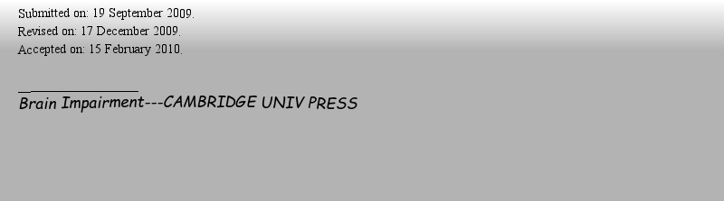 SCIE期刊Brain Impairment 2024/2025影响因子:1.102 (BRAIN IMPAIR) (1443-9646). (CLINICAL NEUROLOGY)(临床神经病学)Science Citation Ind |