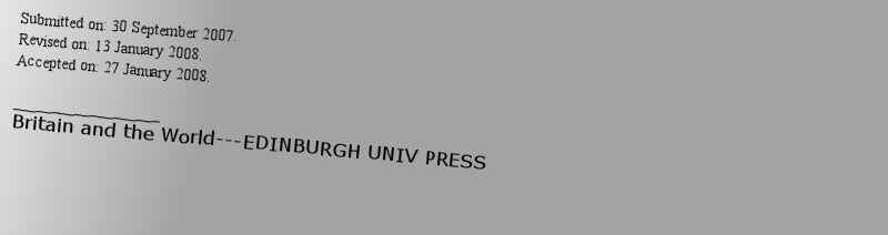 SSCI期刊Britain and the World 2024/2025影响因子:0.142 (BRIT WORLD) (2043-8567). (HISTORY)(历史)Social Sciences Citation Index |