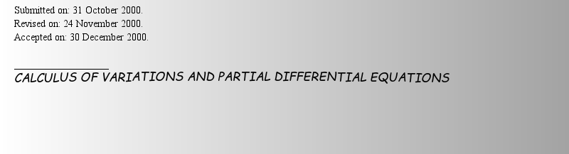 Submitted on: 24 December 2000. Revised on: 14 January 2001. Accepted on: 20 February 2001. ___________________CALCULUS OF VARIATIONS AND PARTIAL DIFFERENTIAL EQUATIONS