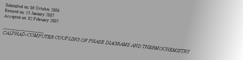 | 期刊全称 | CALPHAD-COMPUTER COUPLING OF PHASE DIAGRAMS AND THERMOCHEMISTRY | | 期刊简称 | CALPHAD | | 影响因子2024 | 1.923 | | 视频video | http://file.papertrans.cn/5/4506/4506.mp4 | | ISSN | 0364-5916 | | eISSN | 1873-2984 | | 出版商 | PERGAMON-ELSEVIER SCIENCE LTD | | 发行地址 | THE BOULEVARD, LANGFORD LANE, KIDLINGTON, OXFORD, ENGLAND, OX5 1GB | | 学科分类 | 1.Science Citation Index Expanded (SCIE)--Thermodynamics | Chemistry, Physical | Materials Science, Multidisciplinary | Metallurgy & Metallurgical Engineering; 2.Current Contents Engineering, Computing & Technology--Materials Science & Engineering; 3.Current Contents Physical, Chemical & Earth Sciences--Applied Physics/Condensed Matter/Materials Science; 4.Essential Science Indicators--Materials Science; | | 出版语言 | English |