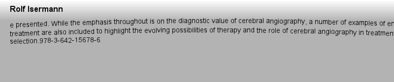 Rolf Isermanne presented. While the emphasis throughout is on the diagnostic value of cerebral angiography, a number of examples of endovascular treatment are also included to highlight the evolving possibilities of therapy and the role of cerebral angiography in treatment selection.978-3-642-15678-6