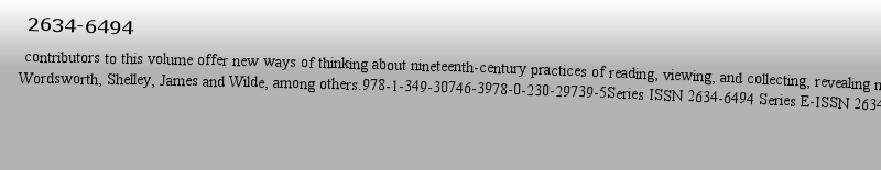 2634-6494 contributors to this volume offer new ways of thinking about nineteenth-century practices of reading, viewing, and collecting, revealing new readings of Wordsworth, Shelley, James and Wilde, among others.978-1-349-30746-3978-0-230-29739-5Series ISSN 2634-6494 Series E-ISSN 2634-6508
