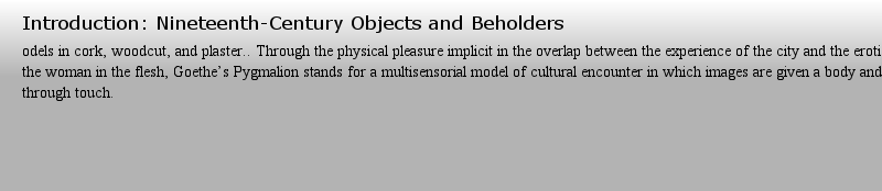 Book 2010Paying attention to the historically specific dimensions of objects such as the photograph, the illustrated magazine and the collection, the contributors to this volume offer new ways of thinking about nineteenth-century practices of reading, viewing, and collecting, revealing new readings of Wordsworth, Shelley, James and Wilde, among others.