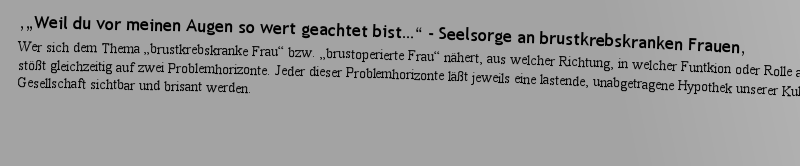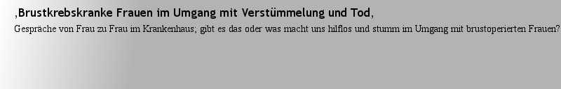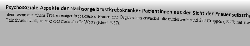 Titlebook: Im Leben bleiben; Psychosoziale Aspekt Dieter Alt (Leiter der Gruppe Onkologie/Endokrinol Book 1991 Springer-Verlag · Heidelberg 1991 Brust |