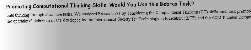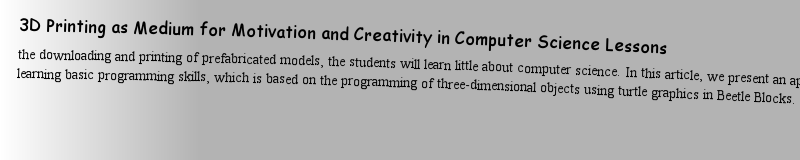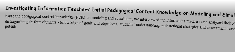 | 关键词 | Informatics in schools; informatics education; ICT in education; teaching informatics; didactic; learning |