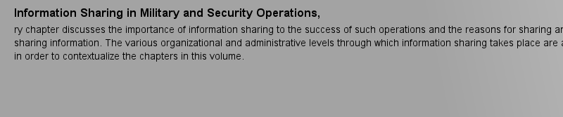 Titlebook: Information Sharing in Military Operations; Irina Goldenberg,Joseph Soeters,Waylon H. Dean Book 2017 Springer International Publishing Swi |