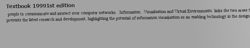 Textbook 19991st edition Virtual Environments, HCI, and Information Retrieval, as well as being a useful resource for consultants and practitioners. The book contains 144 wonderful colour images of intriguing and influential works in information visualisation.
