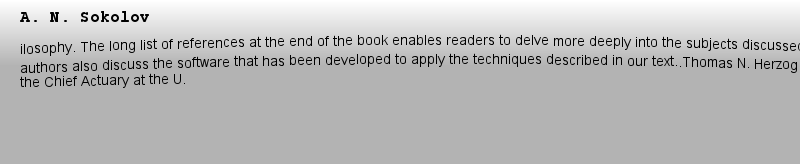 A. N. Sokolovilosophy. The long list of references at the end of the book enables readers to delve more deeply into the subjects discussed here. The authors also discuss the software that has been developed to apply the techniques described in our text..Thomas N. Herzog, Ph.D., ASA is the Chief Actuary at the U.