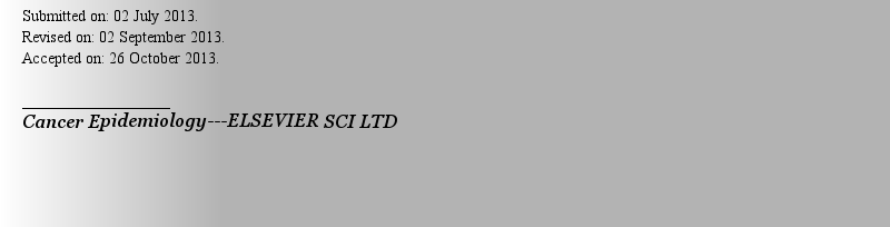 Submitted on: 26 October 2011. Revised on: 05 December 2011. Accepted on: 14 January 2012. ___________________Cancer Epidemiology---ELSEVIER SCI LTD