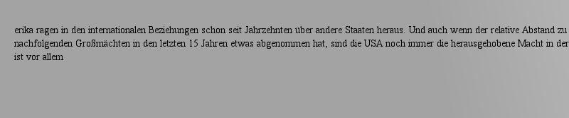 Toivo Niskanenerika ragen in den internationalen Beziehungen schon seit Jahrzehnten über andere Staaten heraus. Und auch wenn der relative Abstand zu den nachfolgenden Großmächten in den letzten 15 Jahren etwas abgenommen hat, sind die USA noch immer die herausgehobene Macht in der Staatenwelt. Das ist vor allem