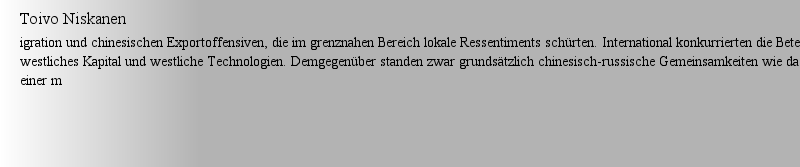 Toivo Niskanenigration und chinesischen Exportoffensiven, die im grenznahen Bereich lokale Ressentiments schürten. International konkurrierten die Beteiligten um westliches Kapital und westliche Technologien. Demgegenüber standen zwar grundsätzlich chinesisch-russische Gemeinsamkeiten wie das Interesse an einer m