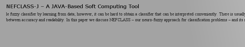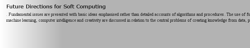 | 书目名称 | Intelligent Systems and Soft Computing | | 副标题 | Prospects, Tools and | | 编辑 | Benham Azvine,Detlef D. Nauck,Nader Azarmi | | 视频video | http://file.papertrans.cn/471/470062/470062.mp4 | | 概述 | Includes supplementary material: | | 丛书名称 | Lecture Notes in Computer Science | | 图书封面 |  | | 描述 | Artificial intelligence has, traditionally focused on solving human-centered problems like natural language processing or common-sense reasoning. On the other hand, for a while now soft computing has been applied successfully in areas like pattern recognition, clustering, or automatic control. The papers in this book explore the possibility of bringing these two areas together..This book is unique in the way it concentrates on building intelligent software systems by combining methods from diverse disciplines, such as fuzzy set theory, neuroscience, agent technology, knowledge discovery, and symbolic artificial intelligence. The first part of the book focuses on foundational aspects and future directions; the second part provides the reader with an overview of recently developed software tools for building flexible intelligent systems; the final section studies developed applications in various fields. | | 出版日期 | Book 2000 | | 关键词 | Cluster; Processing; artificial intelligence; cognition; fuzzy; intelligence; intelligent systems; knowledg | | 版次 | 1 | | doi | https://doi.org/10.1007/10720181 | | isbn_softcover | 978-3-540-67837-3 | | isbn_ebook | 978-3-540-44917-1Series ISSN 0302-9743 Series E-ISSN 1611-3349 | | issn_series | 0302-9743 | | copyright | Springer-Verlag Berlin Heidelberg 2000 |